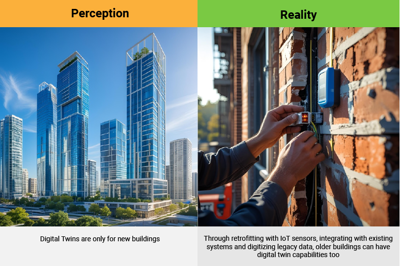 Another misconception is that digital twin technology can only be applied to new, state-of-the-art buildings designed with digital systems from the ground up.