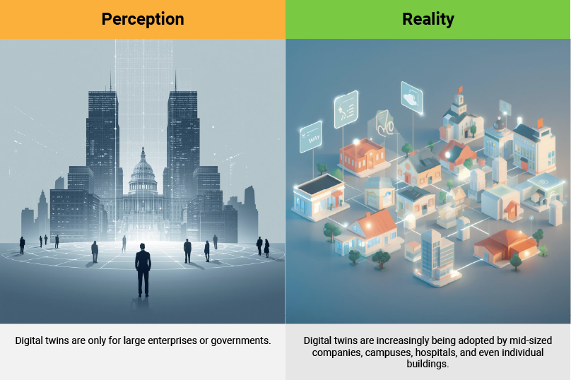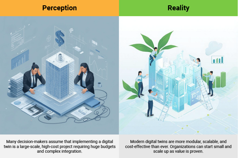 ✅ Reality: Modern digital twins are more modular, scalable, and cost-effective than ever. Organizations can start small and scale up as value is proven.