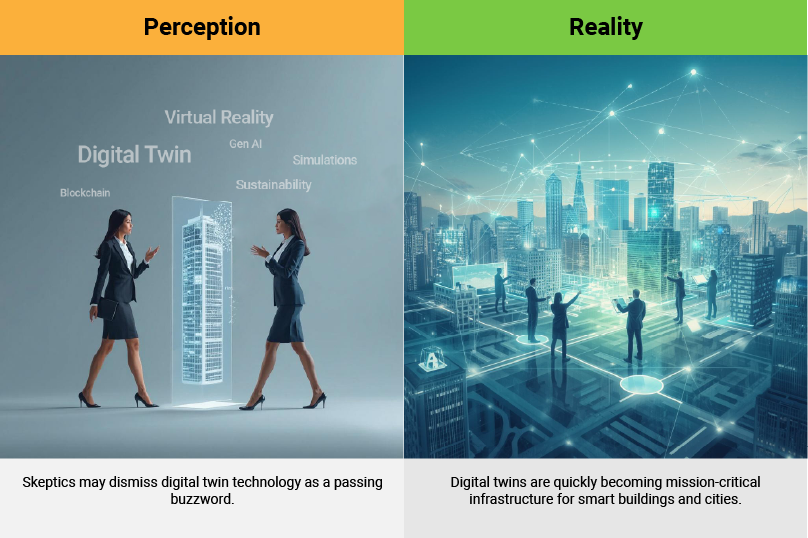✅ Reality: Digital twins are quickly becoming mission-critical infrastructure for smart buildings and cities.